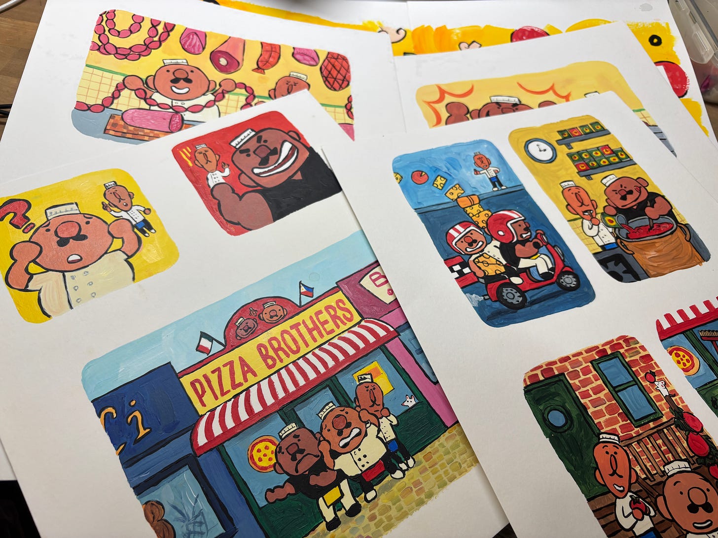 These past couple of months I’ve been deep in the trenches working on final art for my fourth book titled The Pizza Brothers.